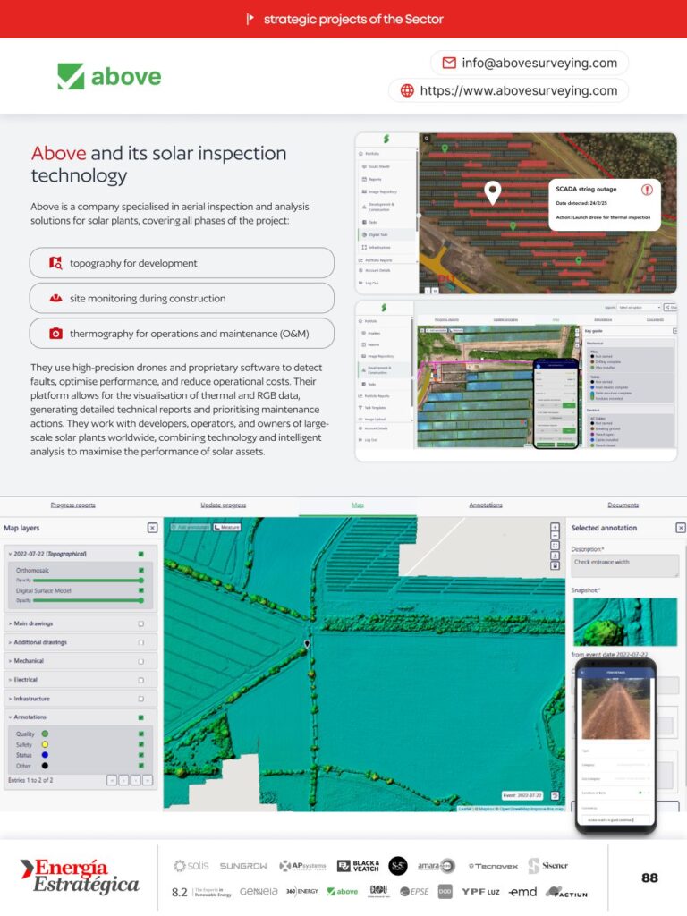 With more than 50 GW of solar capacity inspected, operations in 54 countries and over 80,000 hectares mapped, Above has positioned itself as one of the leading firms in solar digitalisation. Its presence on the platform aims to bring its technology closer to new players in the Latin American and global markets, targeting developers, EPC contractors, asset managers and technical operators.