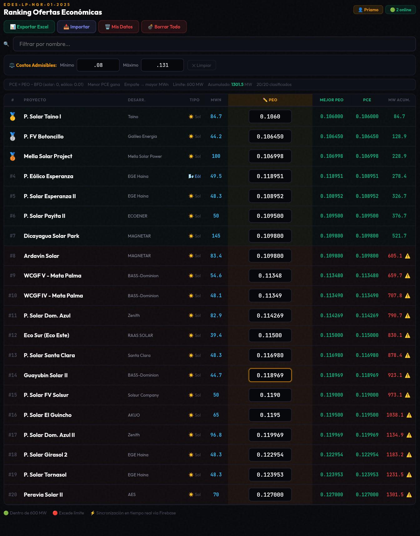 Which developers are likely to be awarded? The process includes Taino, Galileo Energía, Mella Solar Power, EGE Haina, ECOENER and Magnetar, which make up the main block of selected projects. This group reflects a combination of players with strong local presence and international participation.