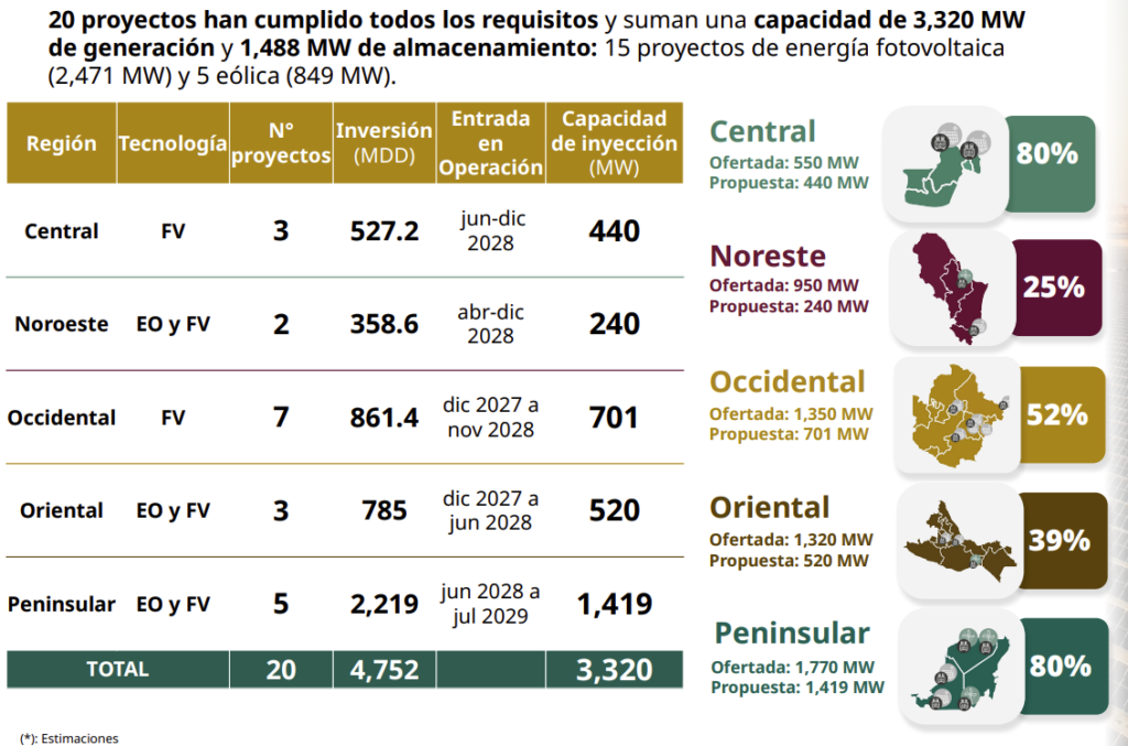 The process was carried out under the framework of Binding Energy Planning (Planeación Energética Vinculante), marking a structural shift in Mexico’s permitting model. Unlike the previous scheme, which was based on individual applications from private developers, the new approach establishes centralised planning that defines where generation can take place, which technologies can be deployed and under what conditions.