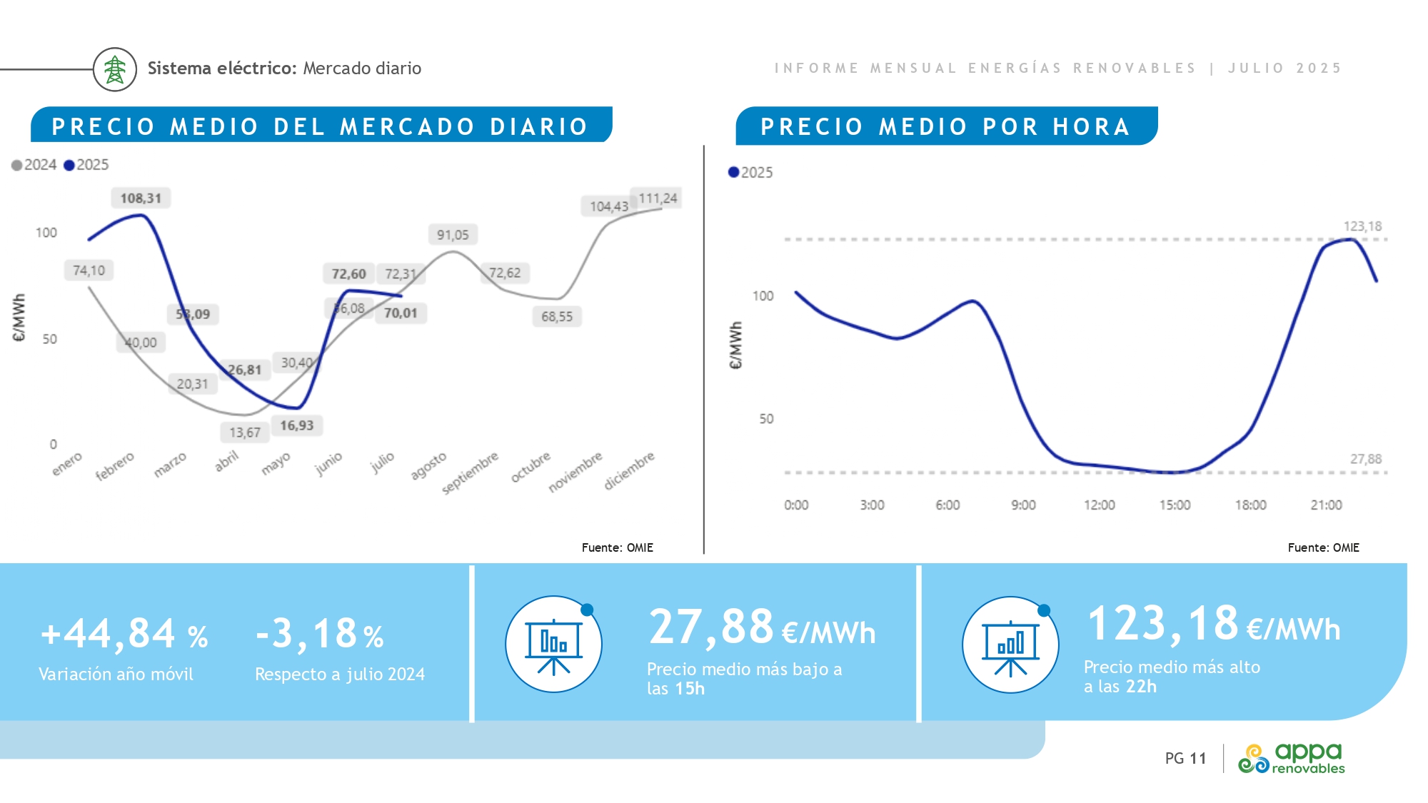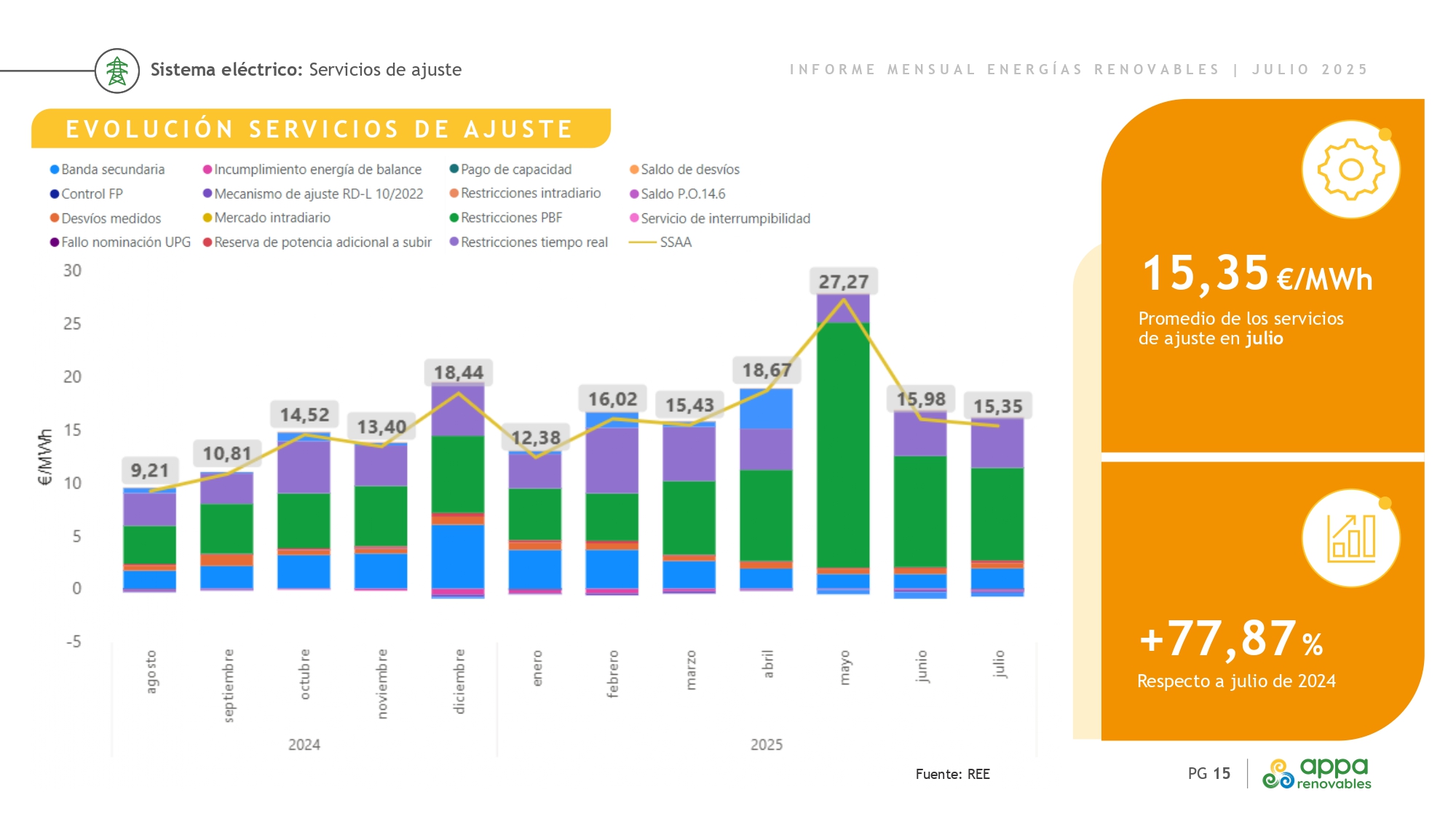 In terms of grid management, balancing services had an average cost of €15.35/MWh, representing a 77.9% increase compared with July 2024.